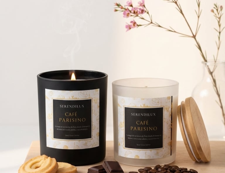 Elaboradas artesanalmente con cera de soya y coco, libres de químicos agresivos, nuestras velas combinan fragancias puras y un diseño atemporal que eleva cada ambiente.